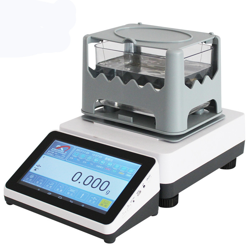 觸摸屏橡膠密度計(jì)橡膠密度儀采用阿基米德浮力法用于測試橡膠,塑膠制品、板材、片材,管材、線材、密封圈、硅膠、塑膠顆粒、PP顆粒、PE顆料、PVC顆粒的密度和體積!